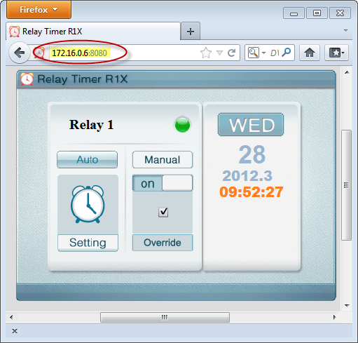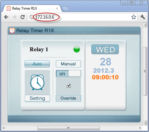 Relay Timer R1X can be controlled on the other computer by visiting the current computer’s IP address in internet browser.