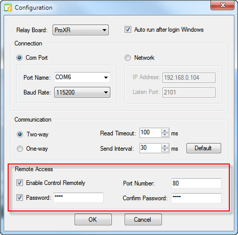 Select Enable Control Remotely checkbox. Set the Port Number or keep default value 80.