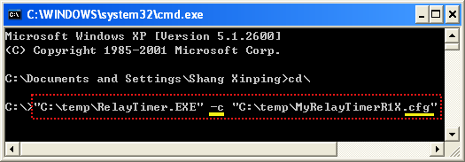 "Path to RelayTimer.exe" -c "Path to *.cfg"
