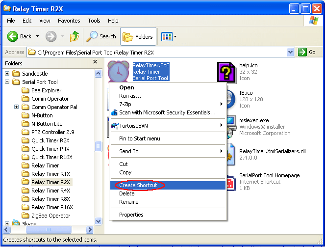 Create shortcut for RelayTimer.exe in the installation folder.