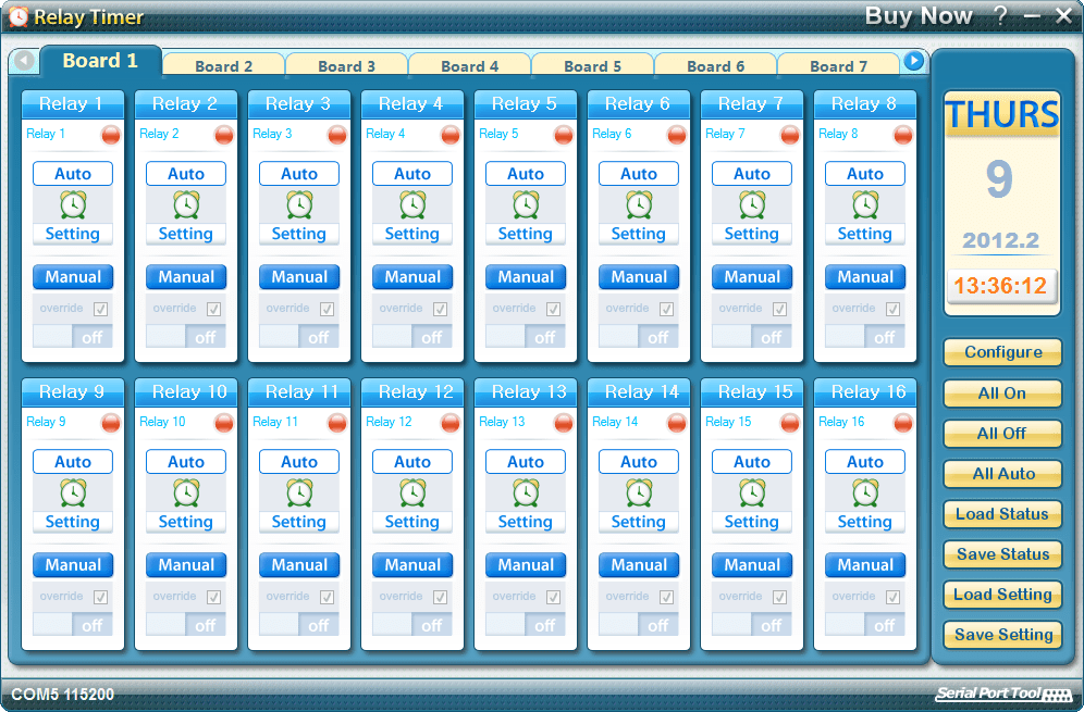 Relay Timer is programmable timer software to control ProXR relay controller boards of National Control Devices. It supports 1 ProXR relay board and up to 15 extension boards with 16-channel on each. It’s fit for controlling lights, motors, pumps, bells, audio, video and other applications related with home automation, science experiment, industry control, energy conservation and so on. Powerful schedule setting make it possible to control anything!