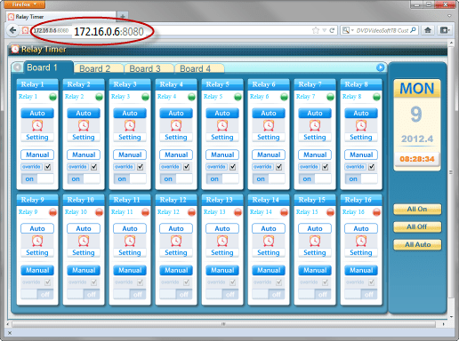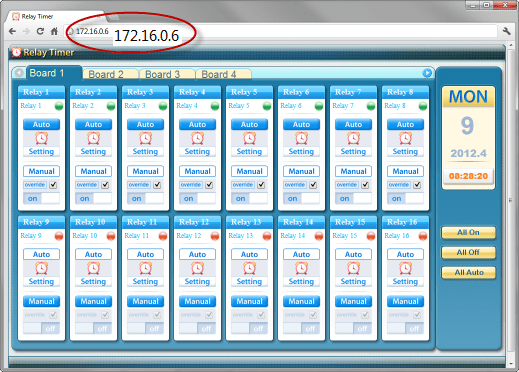 Relay Timer can be controlled on the other computer by visiting the current computer's IP address in internet browser.