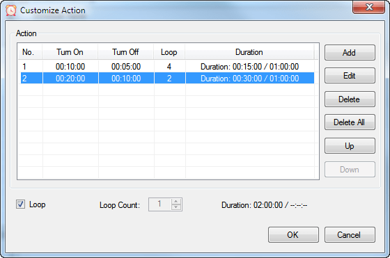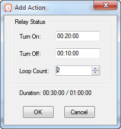 Set Turn On 20 minutes, Turn Off 10 minutes and Loop Count 2.