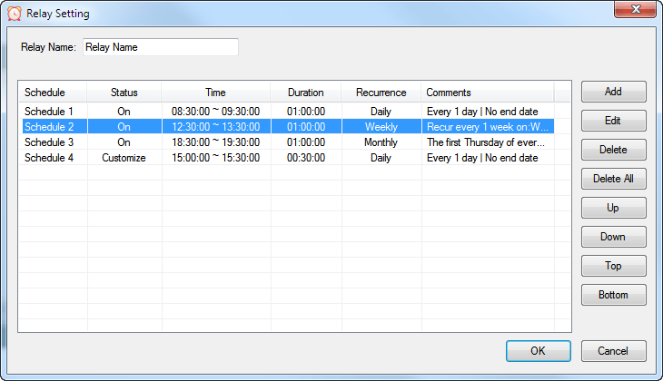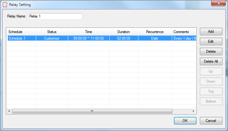 Click OK button to return Schedule Setting dialog and then click OK button again to return Relay Setting dialog.