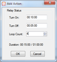 For example, relay can be on 10 minutes, off 5 minutes within one hour, and on 20 minutes and off 10 minutes within the other one hour. This can be set as steps below.